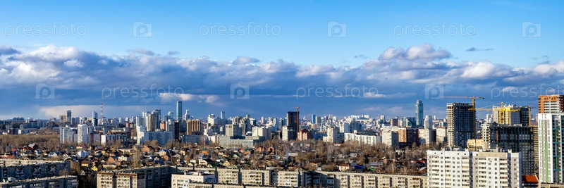 Рассветные облака над мегаполисом раннего зимнего заката в Екатеринбурге