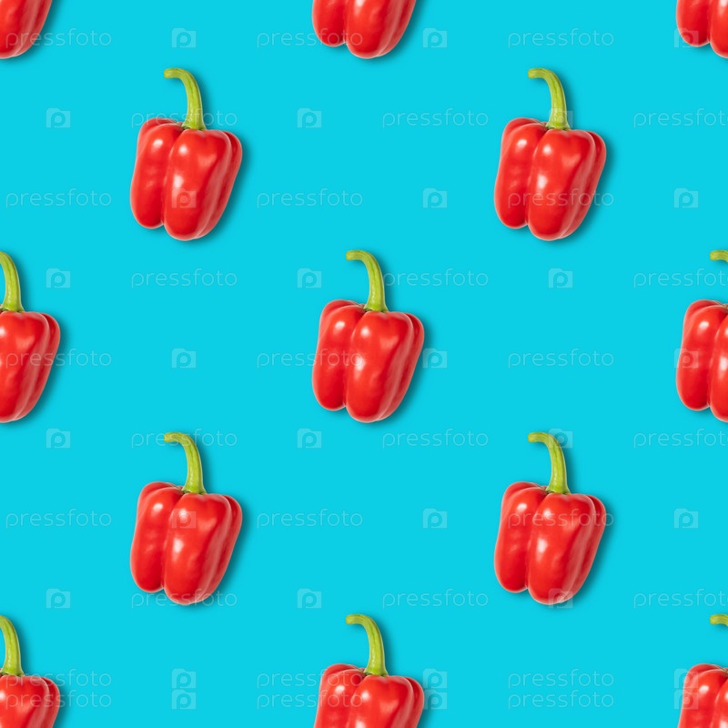 Бесшовный рисунок с красным перцем на синем фоне. Овощной узор. Абстрактный фон