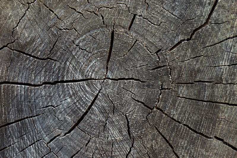 Текстура старой серо-коричневой древесины. Гранж темный фон крупным планом. Подробная текстура треснувшей части дерева