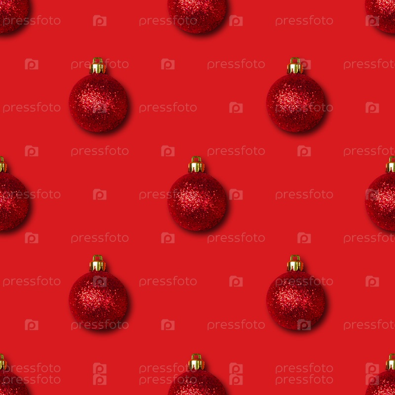 Бесшовный узор с рождественскими украшениями на красном фоне. Рождественский абстрактный фон