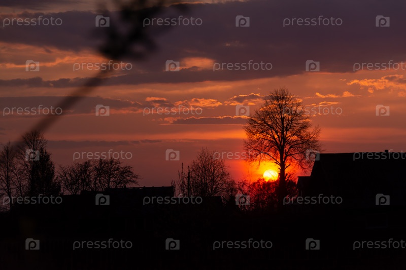 Невероятно красивый, красочный закат на вечернем небе