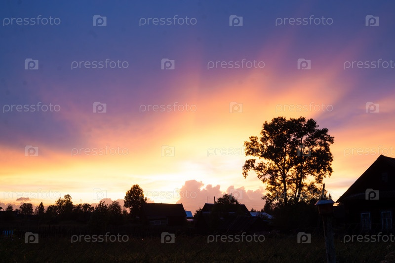 Невероятно красивый, красочный закат на вечернем небе