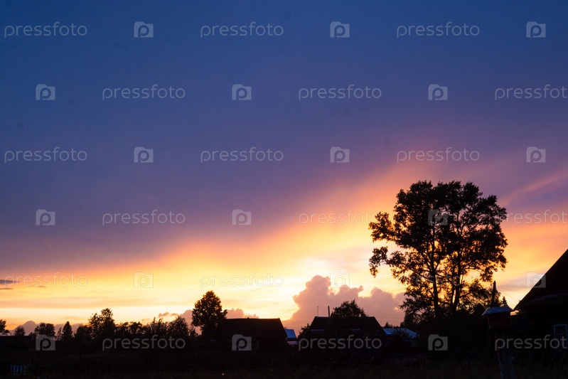 Невероятно красивый, красочный закат на вечернем небе