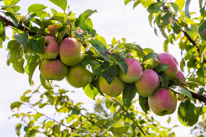 Яблоня, насыщенная спелыми красными сочными вкусными яблоками