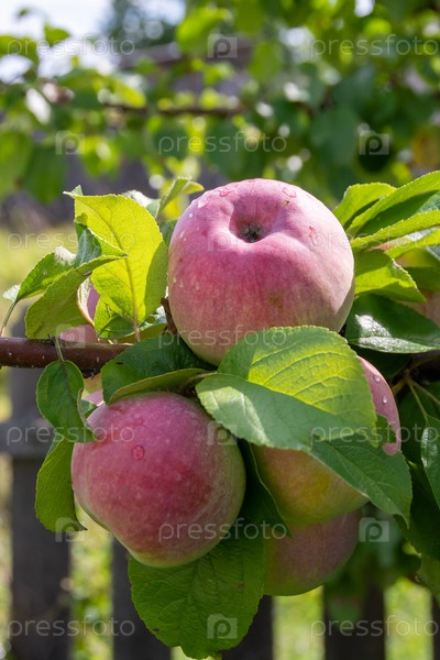 Яблоня, насыщенная спелыми красными сочными вкусными яблоками
