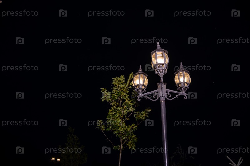 Красивый ухоженный современный парк в городе Кувшиново Тверской области в ночное время