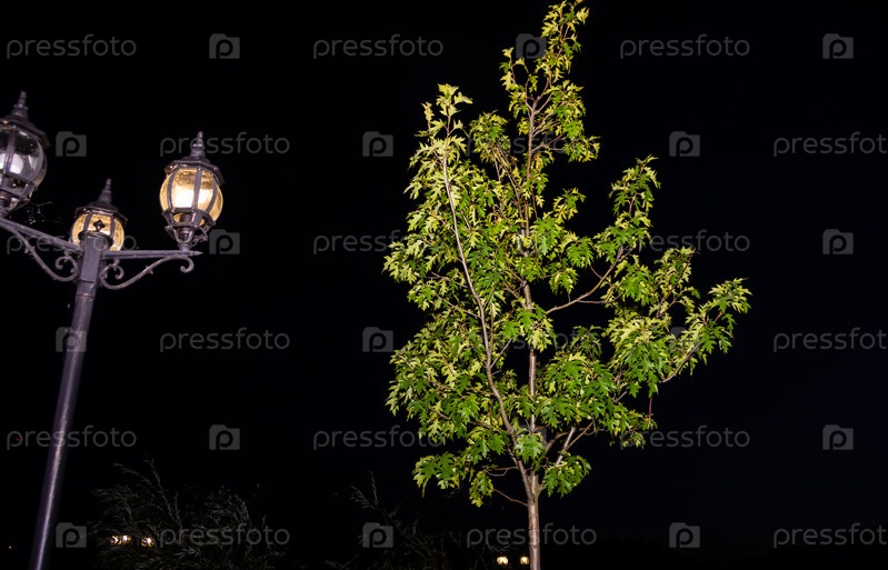 Красивый ухоженный современный парк в городе Кувшиново Тверской области в ночное время