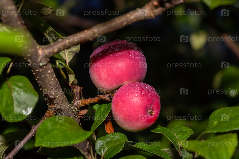 Яблоня, насыщенная спелыми красными сочными вкусными яблоками