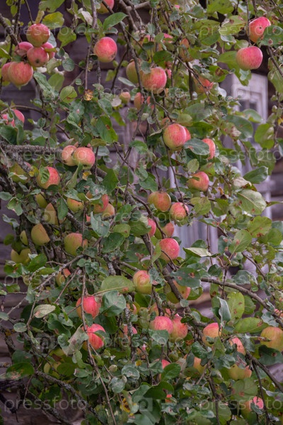 Яблоня, насыщенная спелыми красными сочными вкусными яблоками