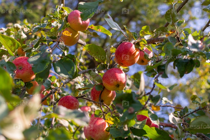 Яблоня, насыщенная спелыми красными сочными вкусными яблоками