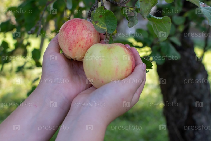 Яблоня, насыщенная спелыми красными сочными вкусными яблоками
