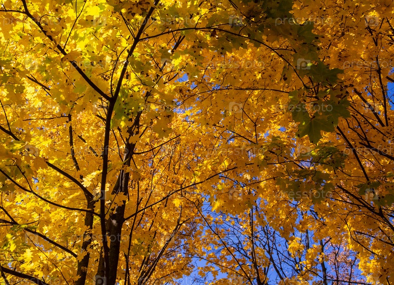 Красивые осенние деревья с желтыми листьями, освещенные солнцем