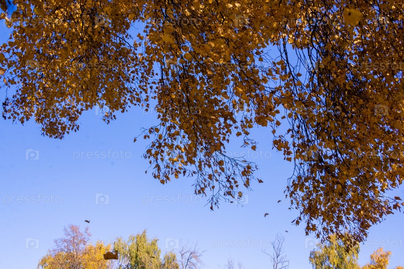 Красивые осенние деревья с желтыми листьями, освещенные солнцем