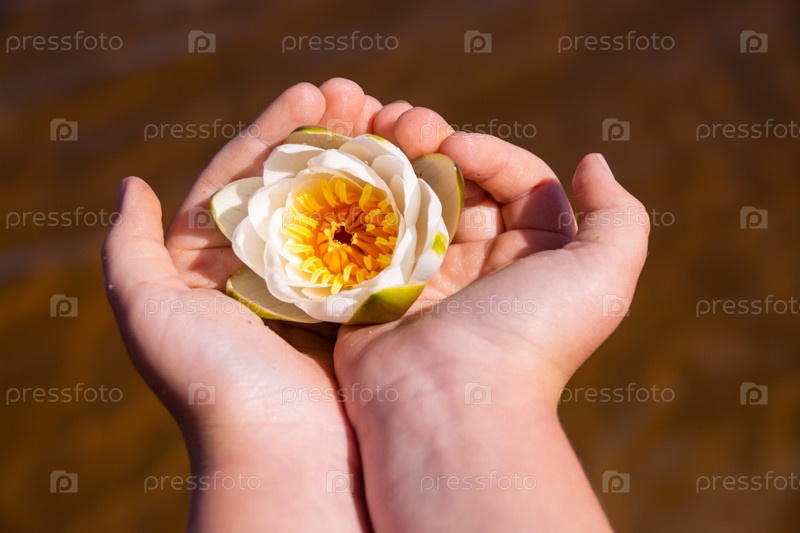 Красивый белый цветок водяной лилии. Водяная лилия (nymphaea)