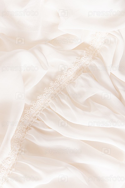 Детали платья невесты из шифоновой бежевой ткани с мягкими волнами и кружевом. свадебный фон. элегантная мягкая текстура фона. пространство для копирования