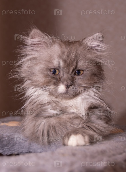 Маленький серый домашний котенок породы турецкой ангоры