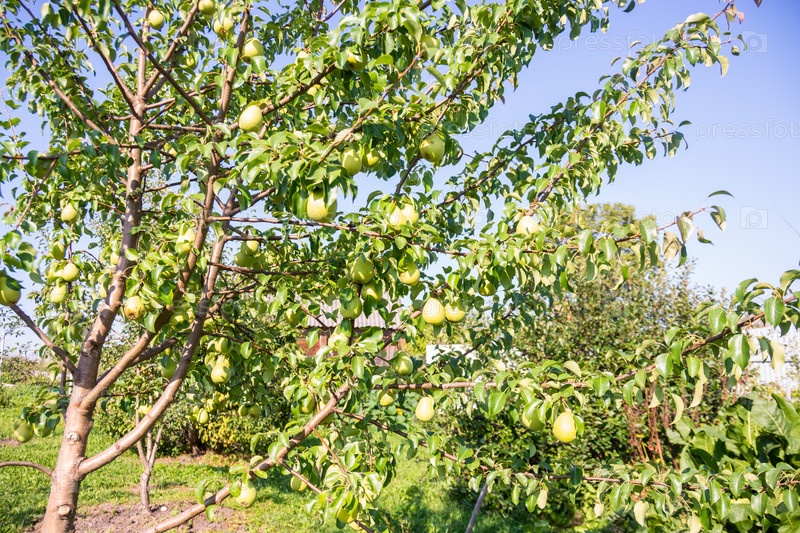 Большие спелые сортовые груши созрели на садовом участке. Сбор урожая. Плоды. Large ripe varietal pears are ripe on the garden plot. Уборка. Фрукты