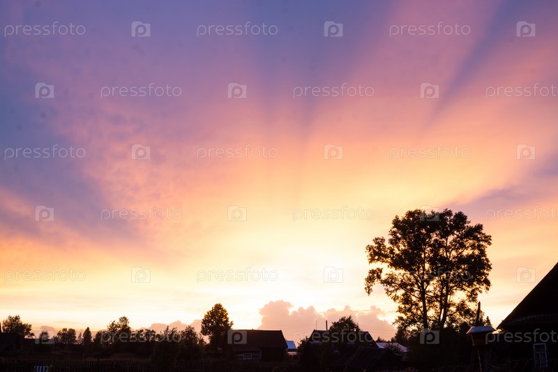Невероятно красивый, красочный закат на вечернем небе