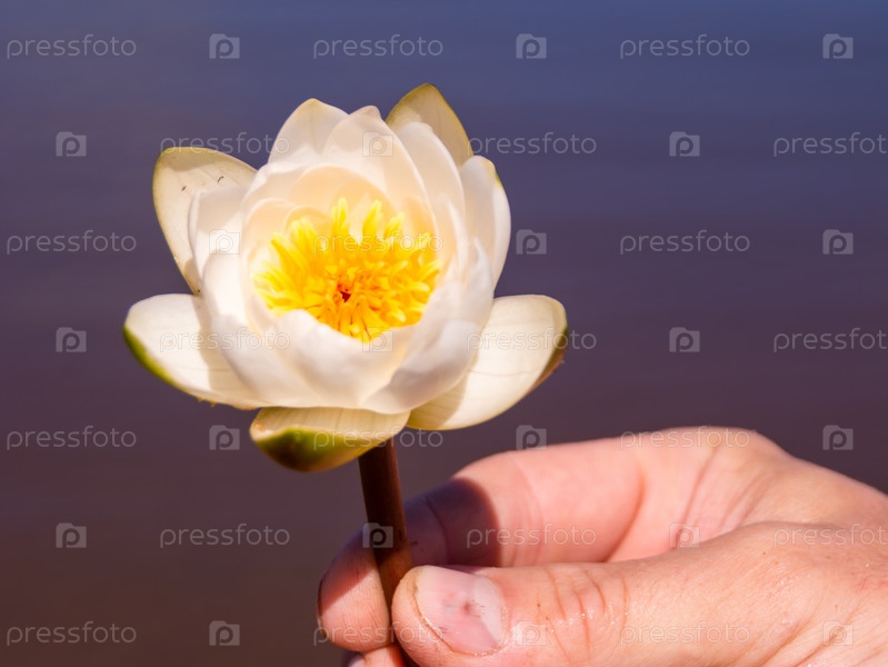 Красивый белый цветок водяной лилии. Водяная лилия (nymphaea)
