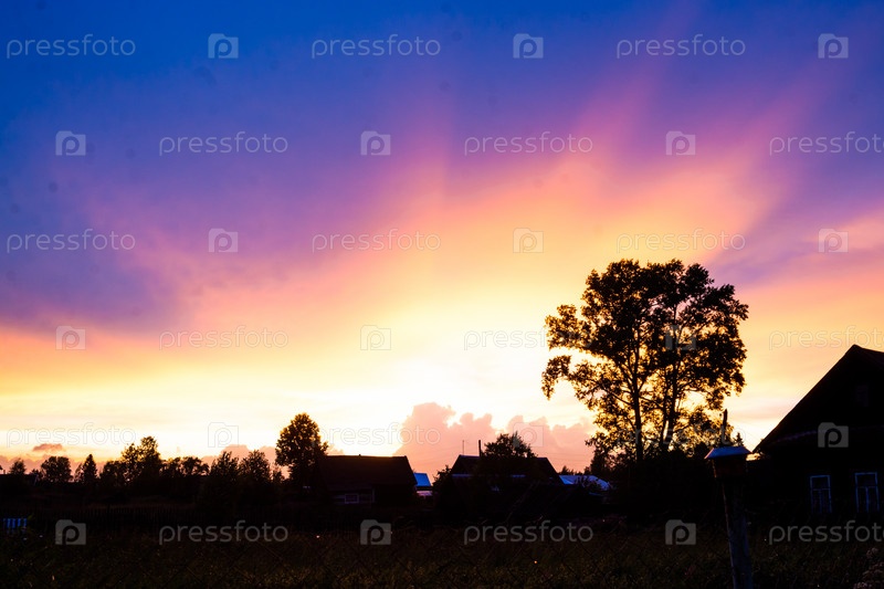 Невероятно красивый, красочный закат на вечернем небе