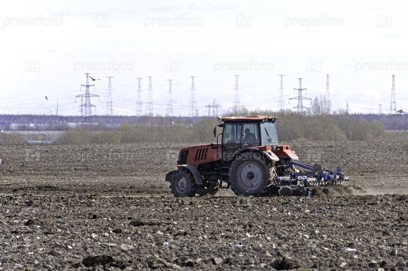 Сельское хозяйство, Трактор с плугом, Вспашка в поле