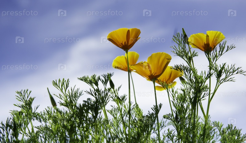 California Escholzia на фоне голубого неба