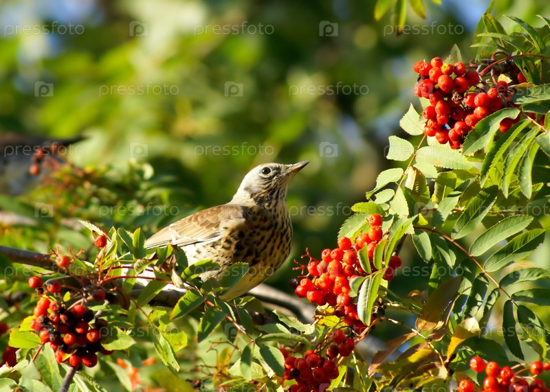 Ягоды рябины и птицы