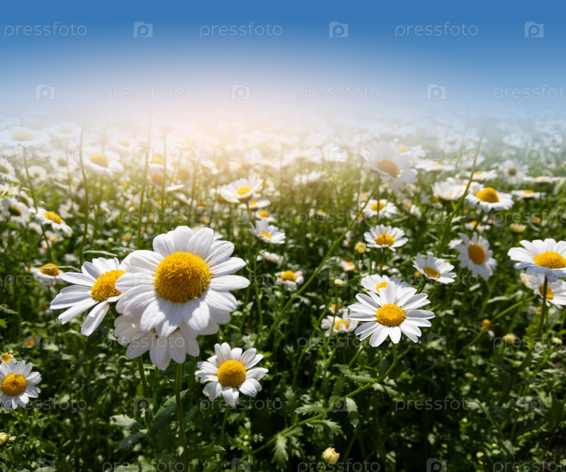 Поле цветов ромашки