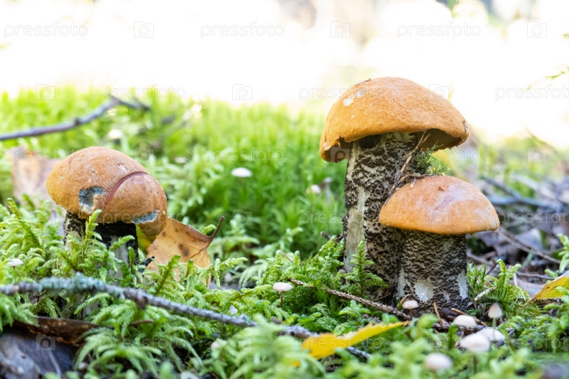 Гриб подберезовик вырос летом в лесу