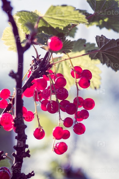 Веточка с красной смородиной в солнечном саду