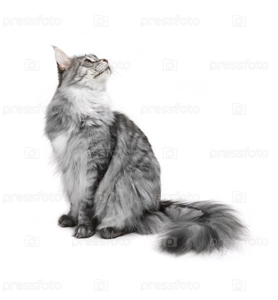 Серый кот смотрит вверх