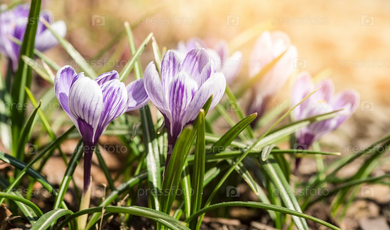 Первые весенние цветы крокусы. Весенний яркий цветочный фон. Нежный символ весны