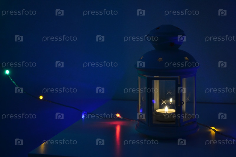 Фонарь со свечей и гирлянда