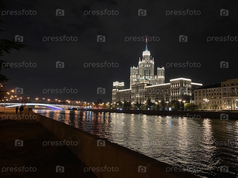 Москва ночью. На фото Москва ночью, вид на набережную и здания