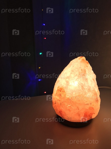 Соляная лампа. На фото соляная лампа, ночной домик и световая гирлянда