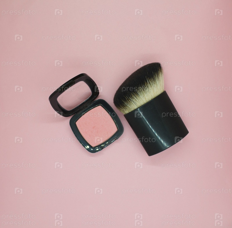 Косметическая кисть и розовый румянец