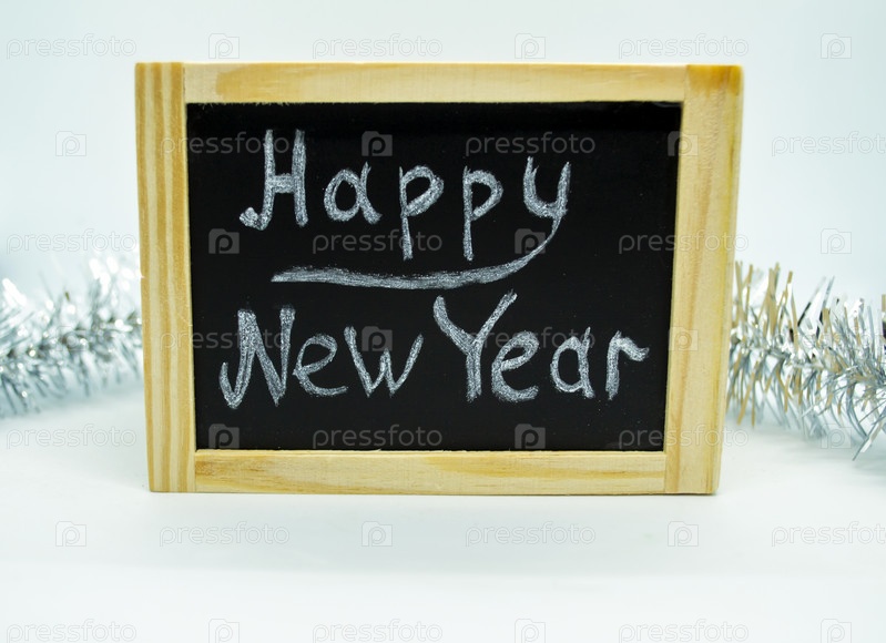 Надпись с Новым годом и мишура