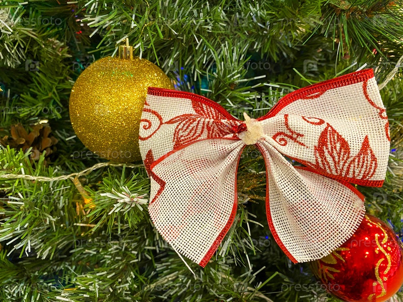 Новогодние игрушки, шары и бантик