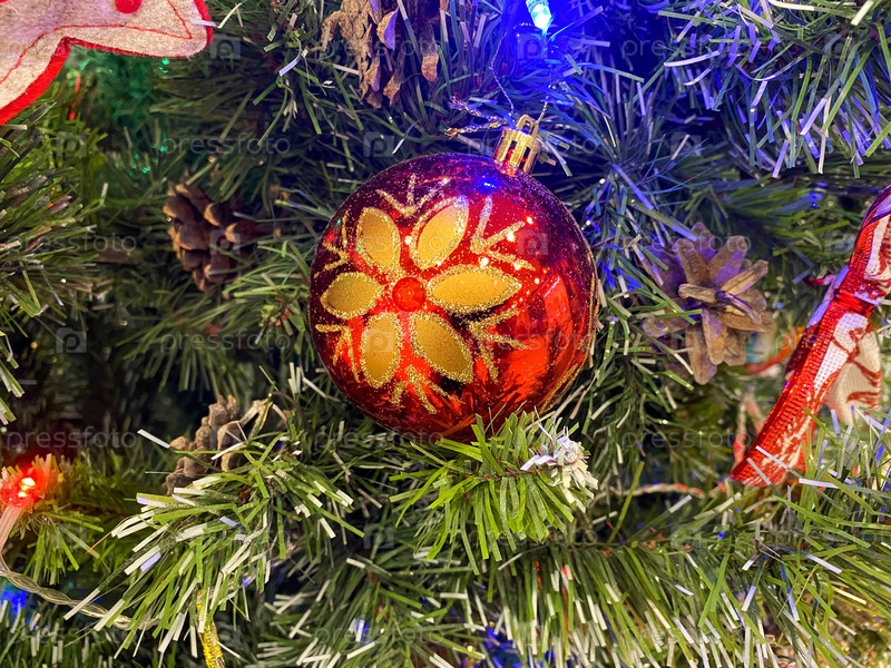 Елочная игрушка, красный шар