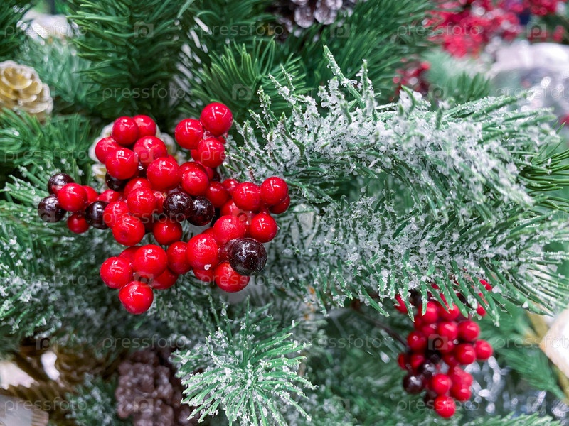 Искусственная елка со снегом и ягодами