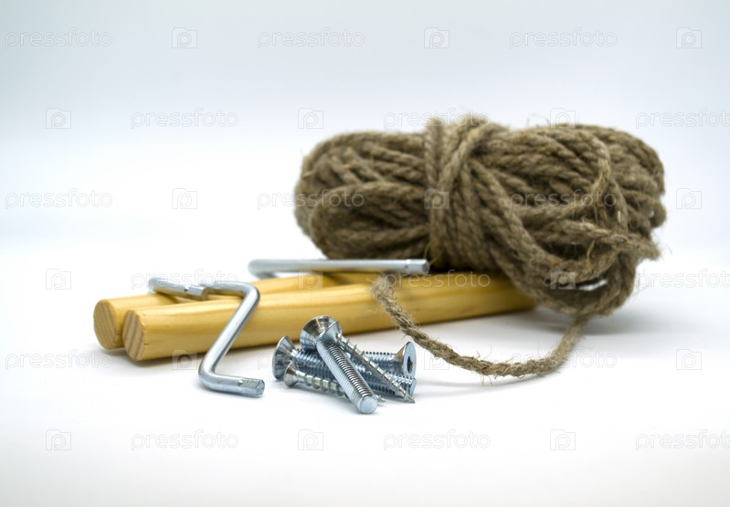 Гвозди, кусочки дерева, шестигранная отвертка и шпагат