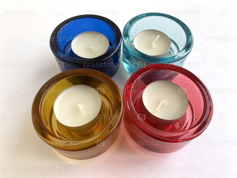 Белые свечи в стеклянных подсвечниках