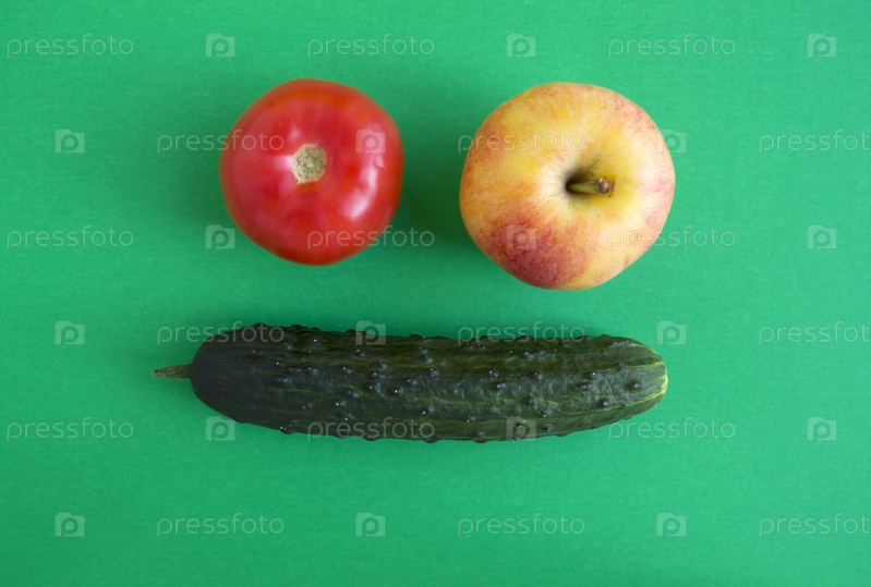 Помидор, яблоко и огурец