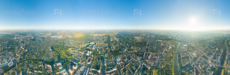 Орел, Россия. Панорама центра города с воздуха утреннего времени. Панорама 360
