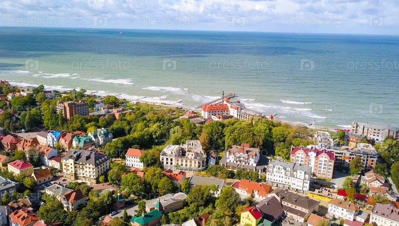 Россия, Зеленоградск. Панорамный вид на Балтийское море, с дрона