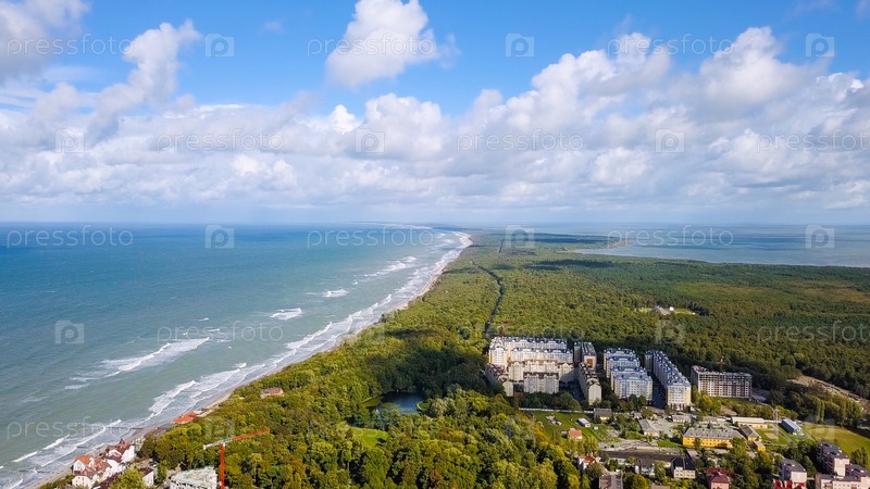 Россия, Зеленоградск. Куршская коса (Куршская коса), Балтийское море. Куршский залив (Куршская бухта), с дрона