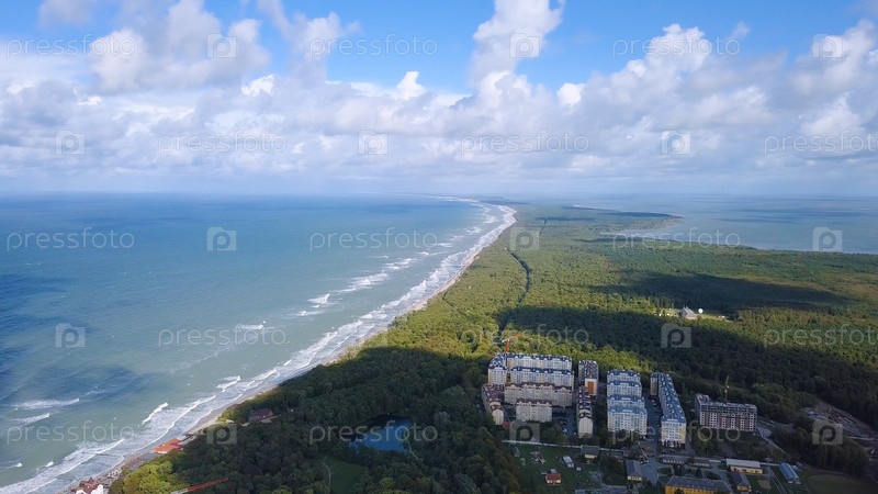 Россия, Зеленоградск. Куршская коса (Куршская коса), Балтийское море. Куршский залив (Куршская бухта), с дрона