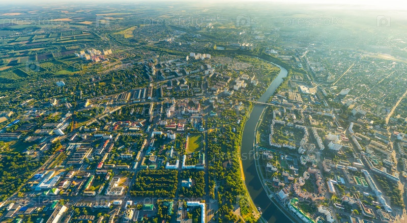 Орел, Россия. Панорама центра города с воздуха утреннего времени. С высоты птичьего полета