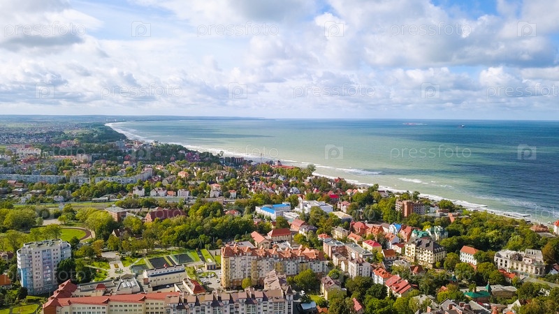 Россия, Зеленоградск. Панорамный вид на Балтийское море, с дрона