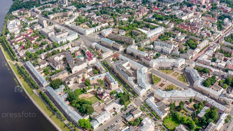 Панорама города Твери, Россия. С высоты птичьего полета. Площадь Ленина, с дрона